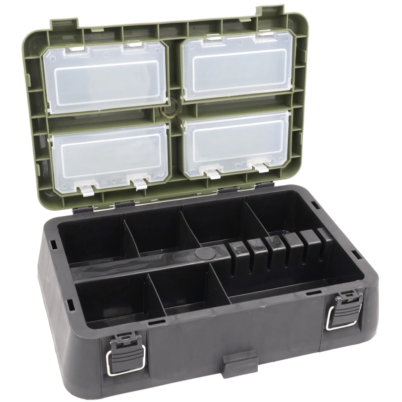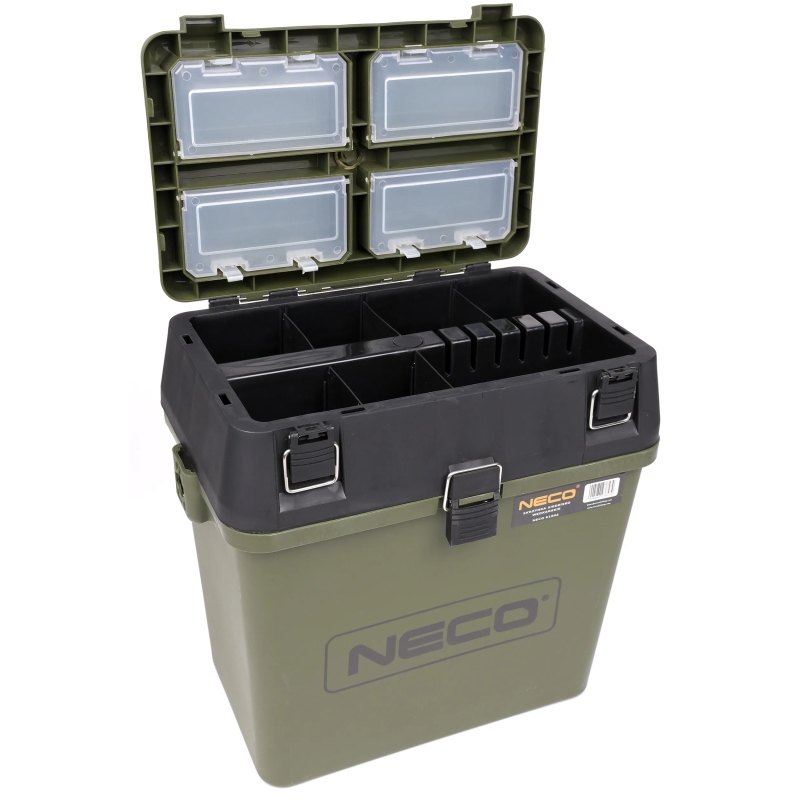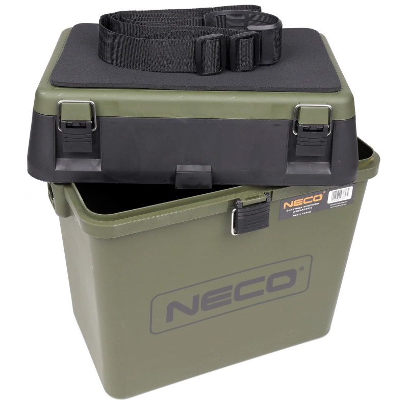 Speciální, vysoce kvalitní úložný box na rybářské náčiní, který slouží i jako sedák. Délka: 36 cm, šířka: 23,5 cm, výška: 39 cm, nosnost 140kg