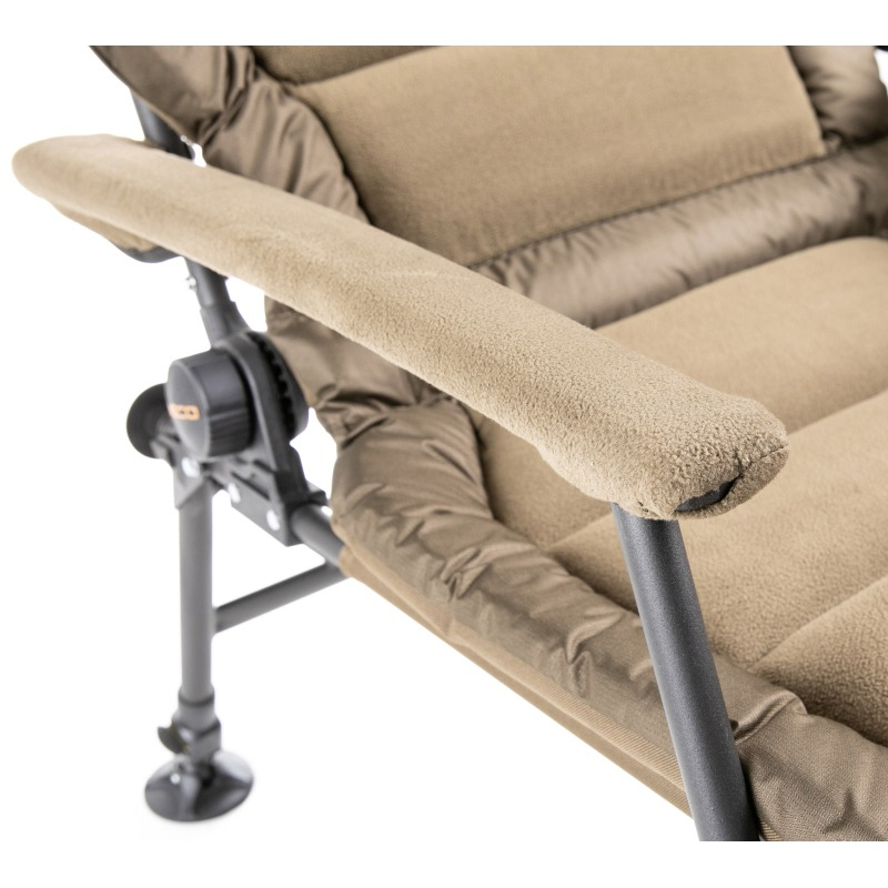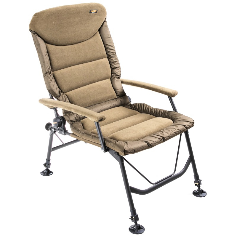 Komfortní kaprové křeslo s 59 cm širokým sedákem a opěradlem 72cm vysokým, s možností vytvořit 129cm dkouhé lehátko