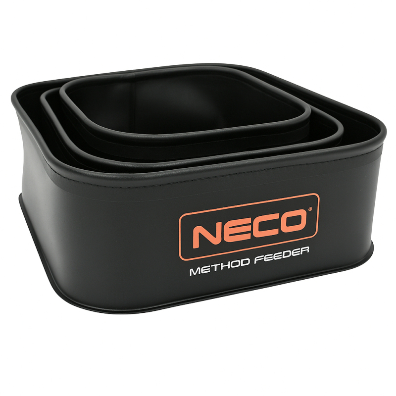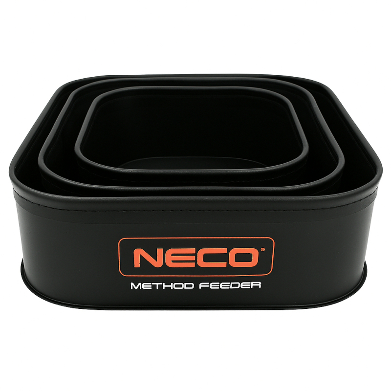 EVA NÁDOBA -3ks SADA METHOD FEEDER (18x18x8 cm + 22x22x8 cm + 26x26x8 cm)Sada funkčních rybářských nádob NECO METHOD FEEDER je vyrobena z vysoce kvalitního materiálu EVA. Jsou mimořádně odolné, odolné vůči deformaci a vlhkosti a velmi snadno se čistí. Jsou ideální jako organizéry, nádoby na krmení, pelety nebo na nabírání vody.Díky široké nabídce velikostí si je můžete přizpůsobit svým potřebám – každou nádobu lze použít k uložení různých druhů návnad nebo příslušenství. Jejich moderní design s logem NECO jim dodává profesionální vzhled.SpecifikaceModel: Method Feeder EVAObsahuje:- 1x nádoba 18 x 18 x 8 cm- 1x nádoba 22 x 22 x 8 cm- 1x nádoba 26 x 26 x 8 cmMateriál: EVA (voděodolná, flexibilní, snadno čistitelná)Užití: krmení, pelety, organizér příslušenství, zásobník na voduVlastnosti: odolnost, odolnost proti nečistotám, omyvatelná